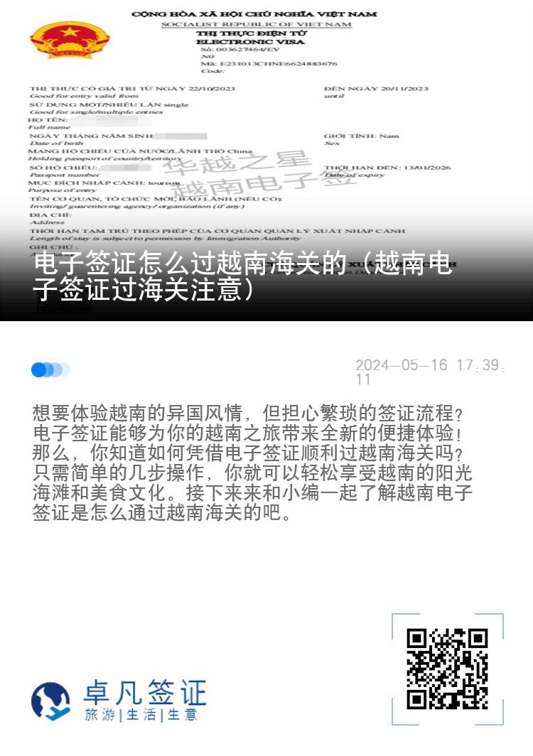 电子签证怎么过越南海关的(越南电子签证过海关注意)