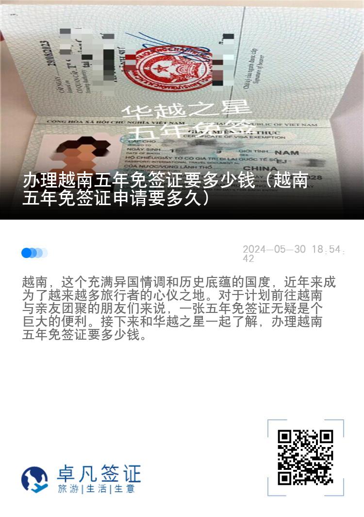 办理越南五年免签证要多少钱(越南五年免签证申请要多久)