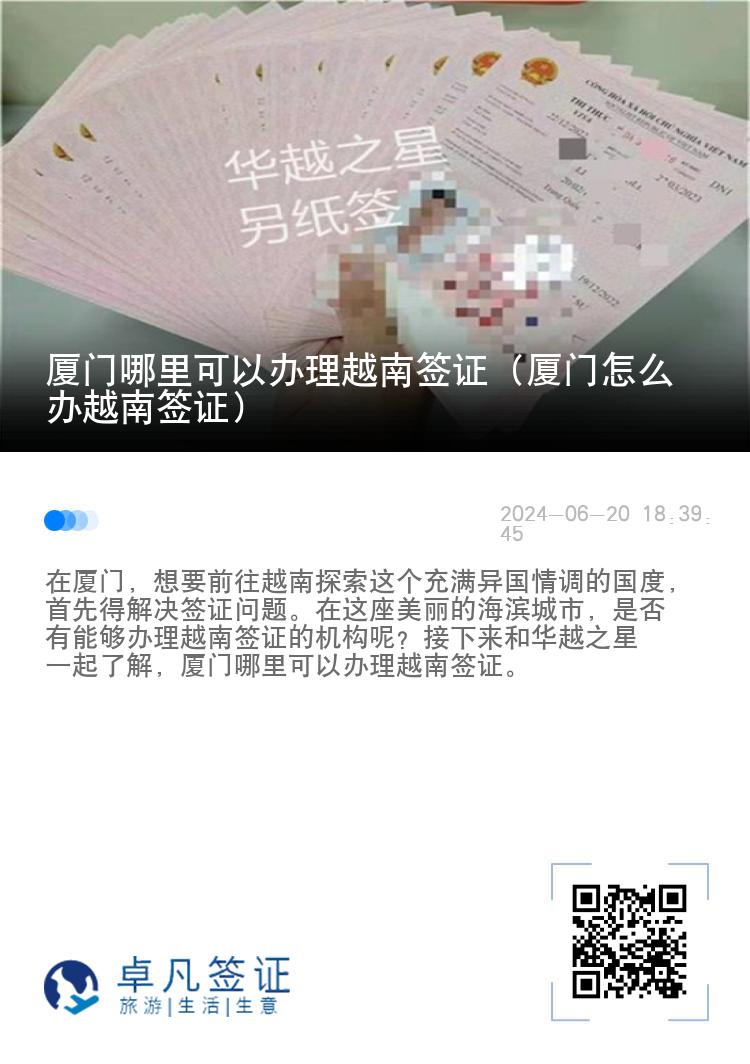 在厦门,想要前往越南探索这个充满异国情调的国度,首先得解决签证问题。在这座美丽的海滨城市,是否有能够办理越南签证的机构呢?接下来和华越之星一起了解,厦门哪里可以办理越南签证。