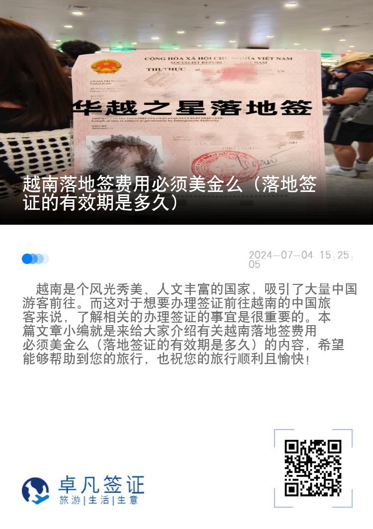 越南落地签费用必须美金么(落地签证的有效期是多久)