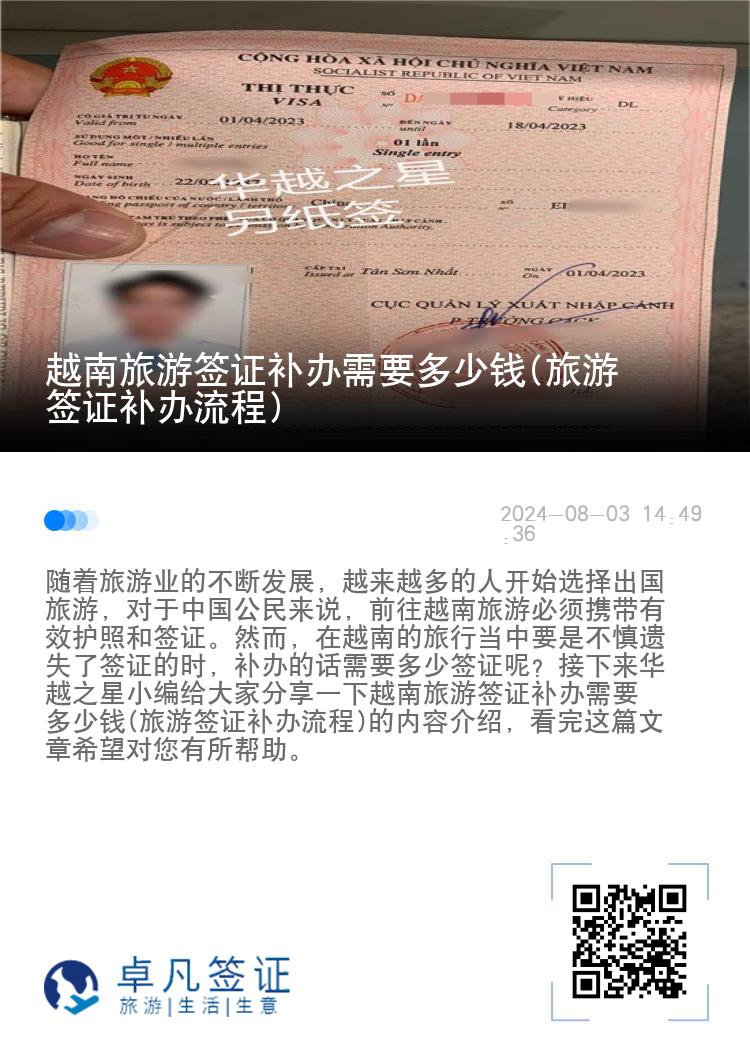 越南旅游签证补办需要多少钱(旅游签证补办流程)