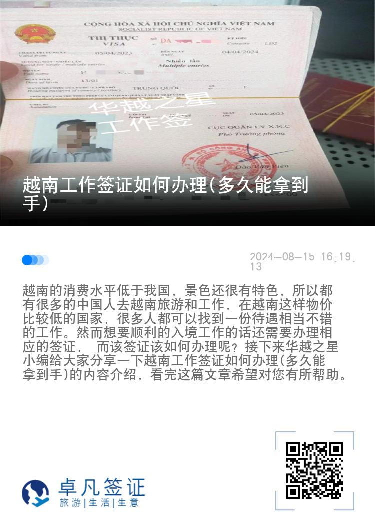 越南的消费水平低于我国,景色还很有特色,所以都有很多的中国人去越南旅游和工作,在越南这样物价比较低的国家,很多人都可以找到一份待遇相当不错的工作。然而想要顺利的入境工作的话还需要办理相应的签证, 而该签证该如何办理呢?接下来华越之星小编给大家分享一下越南工作签证如何办理(多久能拿到手)的内容介绍,看完这篇文章希望对您有所帮助。