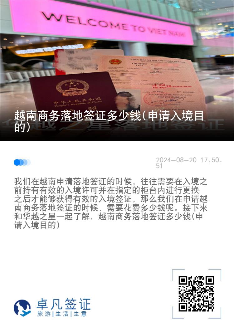 我们在越南申请落地签证的时候,往往需要在入境之前持有有效的入境许可并在指定的柜台内进行更换之后才能够获得有效的入境签证,那么我们在申请越南商务落地签证的时候,需要花费多少钱呢。接下来和华越之星一起了解,越南商务落地签证多少钱(申请入境目的)