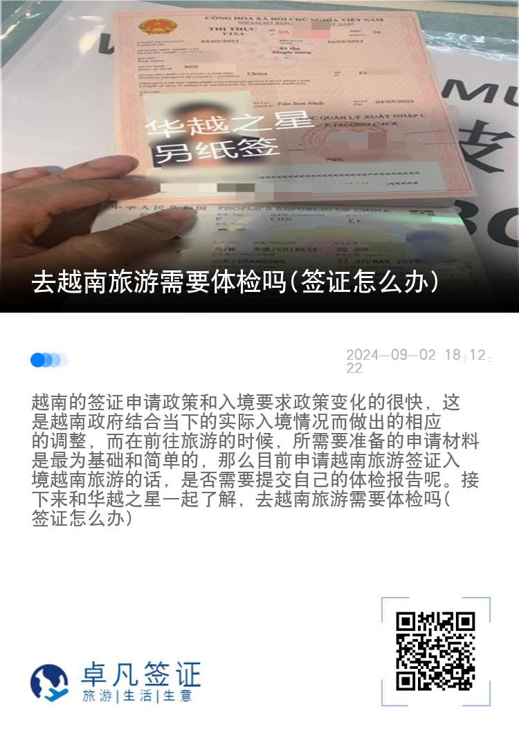 以上就是关于“去越南旅游需要体检吗(签证怎么办)”的相关信息了,希望对你有所帮助。如果你还想要了解更多的相关信息,可以联系我们华越之星客服为你提供专业的咨询和帮助。华越之星致力于为入境越南的客户提供专业的签证办理服务,同时还为在越南境内需要办理其他业务的客户提供专业的办理服务,力求让每一位向华越之星寻求帮助的客户都能得到专业的服务。也祝你在越南生活愉快,一切顺利。