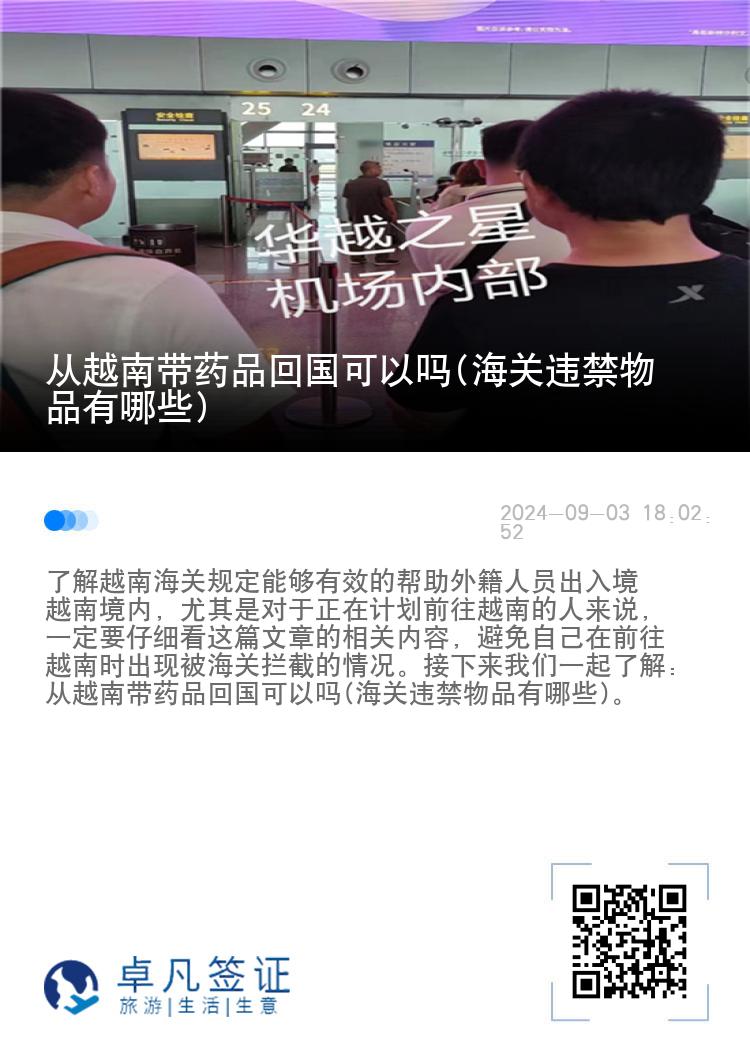 以上就是华越之星的小编给大家带来的关于“从越南带药品回国可以吗(海关违禁物品有哪些)”的相文章张内容介绍了,希望本篇文章可以给您带来帮助。若您对越南海关还有什么不理解的话,可以联系我们华越之星签证,关于您的疑问和需求,我们华越之星的专业团队会随时为您提供咨询帮助和支持,确保您的利益最大化,我们始终与您的越南之旅同行。