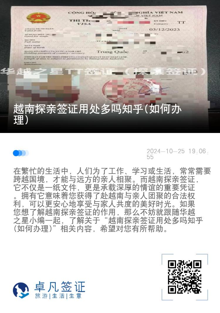 以上就是“越南探亲签证用处多吗知乎(如何办理)”的相关内容,希望可以轻松地办理探亲签证,享受与家人共度的美好时光,后续如果遇到问题或者想了解更多越南的相关资讯,欢迎随时联系华越之星的客服,祝您申请顺利、旅行愉快!