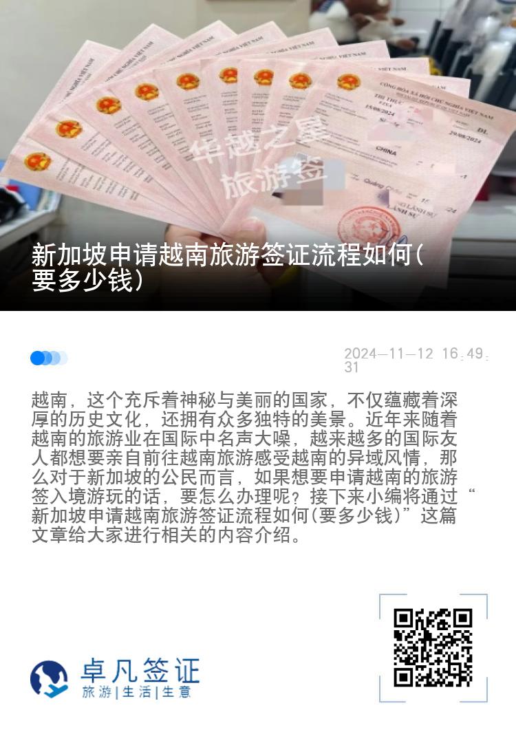 新加坡申请越南旅游签证流程如何(要多少钱)