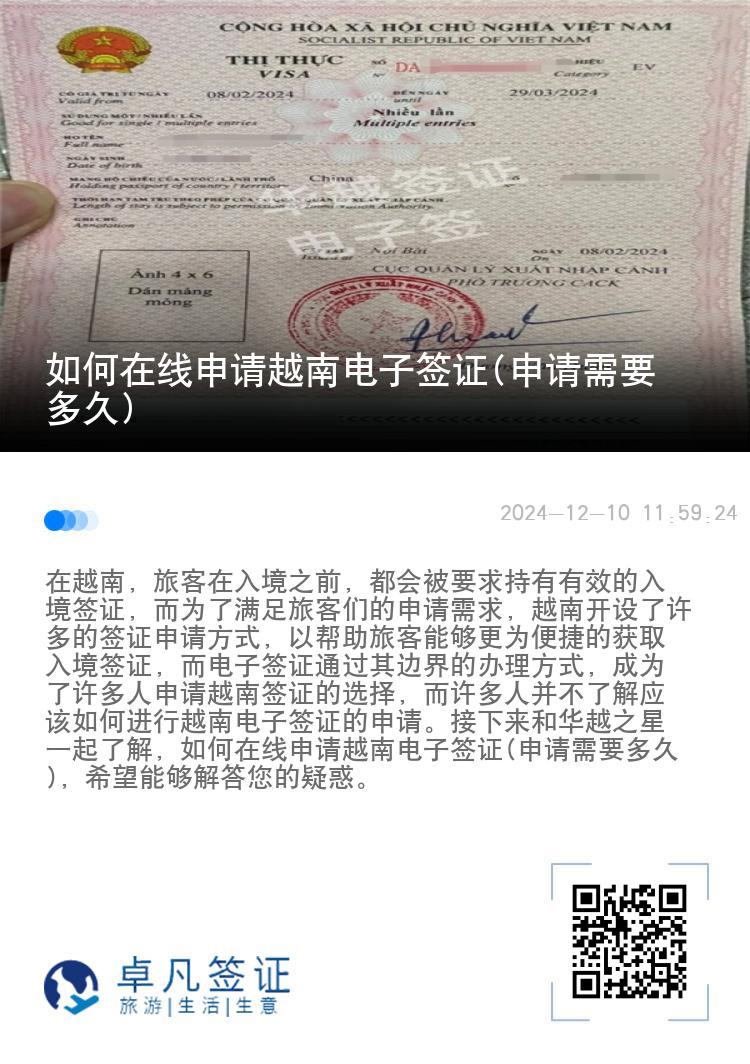 如何在线申请越南电子签证(申请需要多久)
