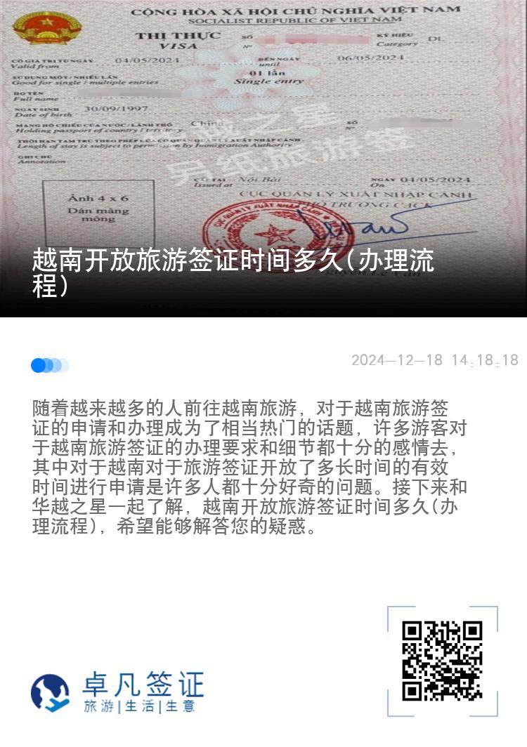 随着越来越多的人前往越南旅游,对于越南旅游签证的申请和办理成为了相当热门的话题,许多游客对于越南旅游签证的办理要求和细节都十分的感情去,其中对于越南对于旅游签证开放了多长时间的有效时间进行申请是许多人都十分好奇的问题。接下来和华越之星一起了解,越南开放旅游签证时间多久(办理流程),希望能够解答您的疑惑。