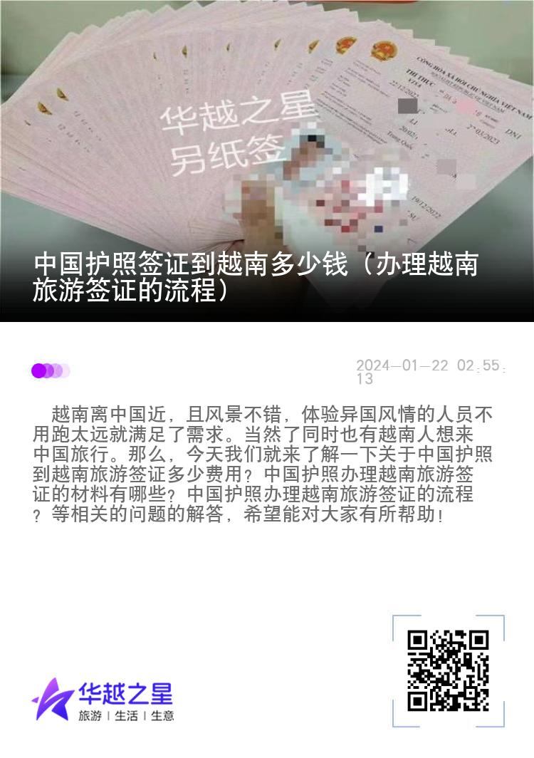 中国护照签证到越南多少钱(办理越南旅游签证的流程)
