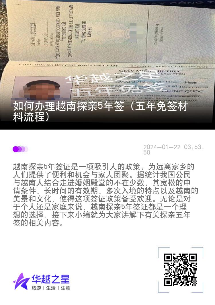 如何办理越南探亲5年签(五年免签材料流程)